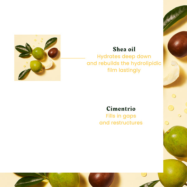 • Provides the scalp with comfort and restores suppleness to dehydrated hair